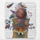 Fox Birdkeeper mit Artichoke von Fab Funky. Fox posiert mit Vögeln und ein Artischocken auf seinem Kopf. Hat eine Buchseite für einen Hintergrund. | 192164D