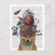 Fox Birdkeeper mit Artichoke von Fab Funky. Fox posiert mit Vögeln und ein Artischocken auf seinem Kopf. Hat eine Buchseite für einen Hintergrund. | 192164D