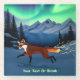 Ein roter Fuchs (Vulpes vulpes), der durch eine schneebedeckte Winternacht mit den Nordlichtern über weite Berge fliegt; Funken entfalten sich vom Fuchs Schwanz. Passen Sie Ihren eigenen Text an. In der finnischen Mythologie ist der Tuliketu, oder Firefox, ein Fuchs, dessen Schwanz funkt. Der Tulikettu läuft so schnell über den Schnee, dass sein Schwanz in den Himmel funkelt, die Nordlichter. Das finnische Wort für das Polarlicht ist "revontulet", was in "Fuchsbrände" übersetzt wird.