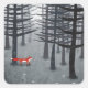 Ein wilder roter Fuchs steht unter den Kiefern in einem dunklen Wald. Landschaftsmalerei für Wildtiere, Natur- und Tierliebhaber.