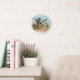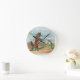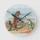 Fox Frog Fishing Antike Illustration Runde Wanduhr
