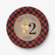 Fox-Holzfäller-karierter Baby-Geburtstag Pappteller