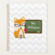 Ein Lehrer-Planer mit einer Abbildung eines Fuchses, der eine Brille trägt, die in der Nähe eines Tafels mit rotem Apfel stehend ist. Personalisieren Sie mit Ihrem Namen auf der Vorderseite.