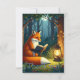 A whimsical scene of a clever fox nestled in a lush forest, surrounded by shelves of books and glowing fireflies that dance like tiny lanterns overhead. The warm light and deep woods create a magical world where curiosity and imagination come alive.