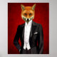 Fox In Abend Anzug, Portrait von Fab Funky. Der Fuchs ist gut gekleidet und hat einen roten Hintergrund. | 190731D