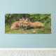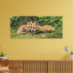 Im Schatten immergrüner Bäume liegen zwei rote Fuchskits nah.