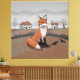 Colourful artwork of a fox in the English countryside, with old timber-framed houses in the background. Perfect for anyone who loves folk art.