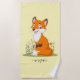 Fox mit Blume, Name des Kindes auf blassgelb Strandtuch