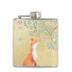 Fox mit Schmetterlingen und rosa Blumen Flachmann