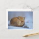 Ein schöner Fuchs auf Schnee macht das Bild für eine Winterzeit Postkarte perfekt.