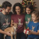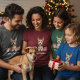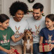 "This charming illustration features a bright and detailed portrait of a Fox Terrier with its characteristic wire-haired coat and alert, expressive eyes. The dog is given a whimsical holiday touch with reindeer antlers adorned with a small gold bell and blue/green ornaments. Two beautifully wrapped Christmas presents with red ribbons sit prominently on either side. This graphic is ideal for personalized holiday gifts for Fox Terrier owners, Christmas cards, apparel, ornaments, or any product celebrating this lively and beloved dog breed."