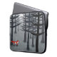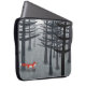 Ein einziger wilder roter Fuchs steht unter den Kiefern in einem dunklen Wald. Für Natur, Wildtiere und Tierfreunde. Originelle Kunst von Nic Squirrell.