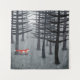 Ein wilder roter Fuchs steht unter Bäumen in einem dunklen Wald. Ein Landschaftsbild für Tiere, Natur und Wildtiere.