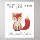 Foxy personalisierte Kinderzimmer Wandkunst mit Aquarellfuchs in der Mitte und Name, Gewicht, Geburtsdatum und Länge in elegantem dekorativen Schriftart geschrieben. Eine tolle Dekoration für das Zimmer Ihres Babys