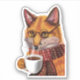 Dieser Fuchs hat einen Fuchs in Brillen gekleidet und einen Strick Schal, der eine heiße Tasse Tee trinkt.