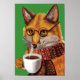 Dieser Fuchs hat einen Fuchs in Brillen gekleidet und einen Strick Schal, der eine heiße Tasse Tee trinkt.