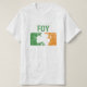 Ein T - Shirt, der ein beunruhigtes irisches weißes, grünes und orange Kleeblatt mit dem Familiennamen Foy kennzeichnet.