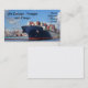Ein großes Seeschiff mit Containern ist bereit, einen belebten Hafen verlassen.