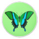 Keramik-Knopf in einem eleganten Frack Schmetterling in Jade grün, türkis und schwarz, auf einem helljade grünen Hintergrund
