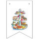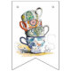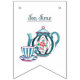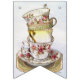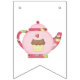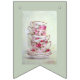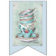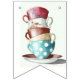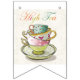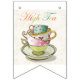 Liebliche Sammlung von Teetassen, Untertassen, Teekannen, Sandwichständer, Kuchen & Makaroons auf dem Frack Party bunting.