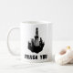 Erdgasanlage, Bohrgerät, gut und bohrenausrüstung in Form einer Hand, die weg umdreht. (den Vogel umdrehend). Text liest "Frack Sie".