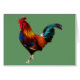 Ein lebendiges Bild eines leghornigen Hahns, in lebhaftem Gold, Orange, Rot, Blau, Grün und Schwarz, im Stil eines Fraktals.
