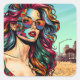 Fracturing Art | Abstrakte Frau am Strand Quadratischer Aufkleber