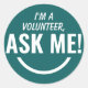 Frag Me Aquamarin Green Volunteer Abzeichen Runder Aufkleber