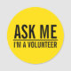 Frag mir | Yellow Volunteer Badgefeaturing text in black fett gesans serif Schriftart on gelb background.