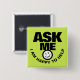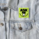 Frag mir Ich bin gerne zu helfen, Slogan fett Text und lächelnd Kundenservice oder Helfer-Abzeichen. Lass deinen Kunden oder der Öffentlichkeit, dass du zur Verfügung bist, um mit diesem hellen, einfachen Text zu helfen, frag mir Design. Weitere Farboptionen sind verfügbar. Entworfen von www.mylittleeden.com