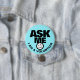 Frag mir Ich bin ein Freiwilliger, Slogan lächeln Kunden-Service-Verbindung oder Helfer-Button-Abzeichen. Lass deinen Kunden oder der Öffentlichkeit, dass du für dieses hellblaue, schwarz-weiße Abzeichen zur Verfügung stehst. Die Hintergrundfarbe kann bei Bedarf geändert werden. Entworfen von www.mylittleeden.com