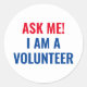 Frag mir, ich bin ein Volunteer, rot-blauer Text Runder Aufkleber