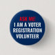 Frag mir, ich bin ein Wähler Registrierung Volunteer rot blauen patriotischen politischen Wahl, Freiwilligenknopf, um die Wähler registrieren zu helfen. Minimalistischer schlichter eleganter Stil. Roter und weißer Text auf marineblau Hintergrund. Mit benutzerdefiniertem Text, damit Sie ihn personalisieren und für Ihre Bedürfnisse individuell gestalten können.