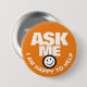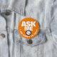 Frag mir Ich bin gerne zu helfen, Slogan fett Text und lächelnd Kundenservice oder Helfer-Button-Abzeichen. Lass deinen Kunden oder der Öffentlichkeit, dass du für dieses orange-weiße Abzeichen zur Verfügung stehst. Die Hintergrundfarbe kann bei Bedarf geändert werden. Entworfen von www.mylittleeden.com