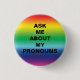 Frag mir meine Pronouns Lgbtq Pride Regenbogen Farben Taste, Button. Bevorzugtes Geschlechterpronomen Button.