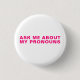 "Frag mir meine Pronouns" Lgbtq Stolz heiß rosa magenta fuchsia weiße Taste, Button