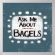 "Frag Me About Bagels" ist ein lustiges Textdesign mit weißer Akzent-Form, umgeben von weißen, weißlichen, weißlichen Textursteinen.