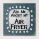 "Frag Me About My Air Fryer" ist ein lustiges Textdesign mit weißer Akzent-Form, umgeben von weißen, weißlichen, weißlichen, weißgestrichenen Punkten.