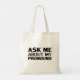 Frag mir über meine schwarze, moderne Typografie a Tragetasche