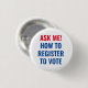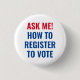 Frag mir, wie man sich registrieren, um zu wählen, einfach rot-weiß-blau patriotischen politischen Wahlen, Freiwilligenknopf, um die Wähler registrieren helfen. Minimalistisches, schlichtes, elegantes Design.