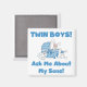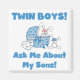 Die stolze junge Mutter und Papa der Baby-Jungen-Zwillinge wird dieses niedliche Design mit zwei Jungen und blauen Text, der lautet "Twin Boys! Frag mir von meinen Söhnen!" Zwei Boys T - Shirt, Karten, Tasten, Magnete, Taschen, Mousepads und mehr!