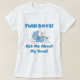 Die stolze junge Mutter und Papa der Baby-Jungen-Zwillinge wird dieses niedliche Design mit zwei Jungen und blauen Text, der lautet "Twin Boys! Frag mir von meinen Söhnen!" Zwei Boys T - Shirt, Karten, Tasten, Magnete, Taschen, Mousepads und mehr!
