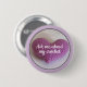 "Fragen Sie mich über Häkelarbeit" mit lila Button