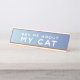 Fragen Sie mich über mein Katze blaues Ombre Schreibtischnamensplakette