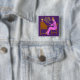 Dieser personalisierte quadratische Knopf für Verfasser hat einen Vintagen Kunst-Dekoschabloneblick. Eine Frau in einem rosa Kleid sitzt an einem Schreibtisch mit dem angehobenen Stift, während eine Lampe nahe bei ihr glänzt. Die Frau schaut, wie sie vom 19. oder vom Anfang des 20. Jahrhunderts ist. Der Entwurf hat ein modernes stilisiertes Gefühl.