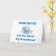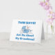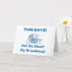 Zwei Babyhäschen in den Baseballmützen, eine blaue Tupfenkorbwiege, ein Herz, das "liest, es ist 2 Jungen!" und blauer Text, der "Doppeljungen liest! Fragen Sie mich über meine Enkel!" wird auf diesen stolzer neuer Großvater Doppeljungen T - Shirts, der Tassen, der mousepads, der Knöpfe, der Magneten, der Aufkleber, der Taschentaschen, des Schlüsselanhängers und anderer Einzelteile gekennzeichnet.