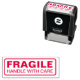 Mit unserer hochwertigen, selbstfarbigen Briefmarke mit dem Wort "FRAGILE, HANDLE WITH CARE" in fett lesbaren Buchstaben heben Sie Ihre Verpackungen hervor und schützen ihre Inhalte. Ideal für Lagerhäuser, Online-Verkäufer und alle, die eine schnelle und konsistente Methode benötigen, um Pakete für eine sorgfältige Handhabung zu kennzeichnen.