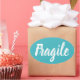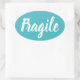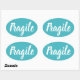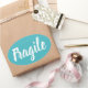 Moderne minimalistische und trendige blau / türkisfarbene Verpackungsaufkleber mit dem Text: fragil.