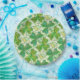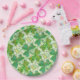 Fragmentierte Kleeblätter in Grüntönen vor einem leichteren, fragmentierten Hintergrund sind ein einzigartiges irisches Design für Geburtstage, Feiertage und St. Patrick's Day.