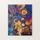 Dieses Puzzlespiel kennzeichnet mein Fraktal "Erinnerungen". Dieses abstrakte Bild hat die blauen, braunen, lila, orange und aquamarinen Farben.